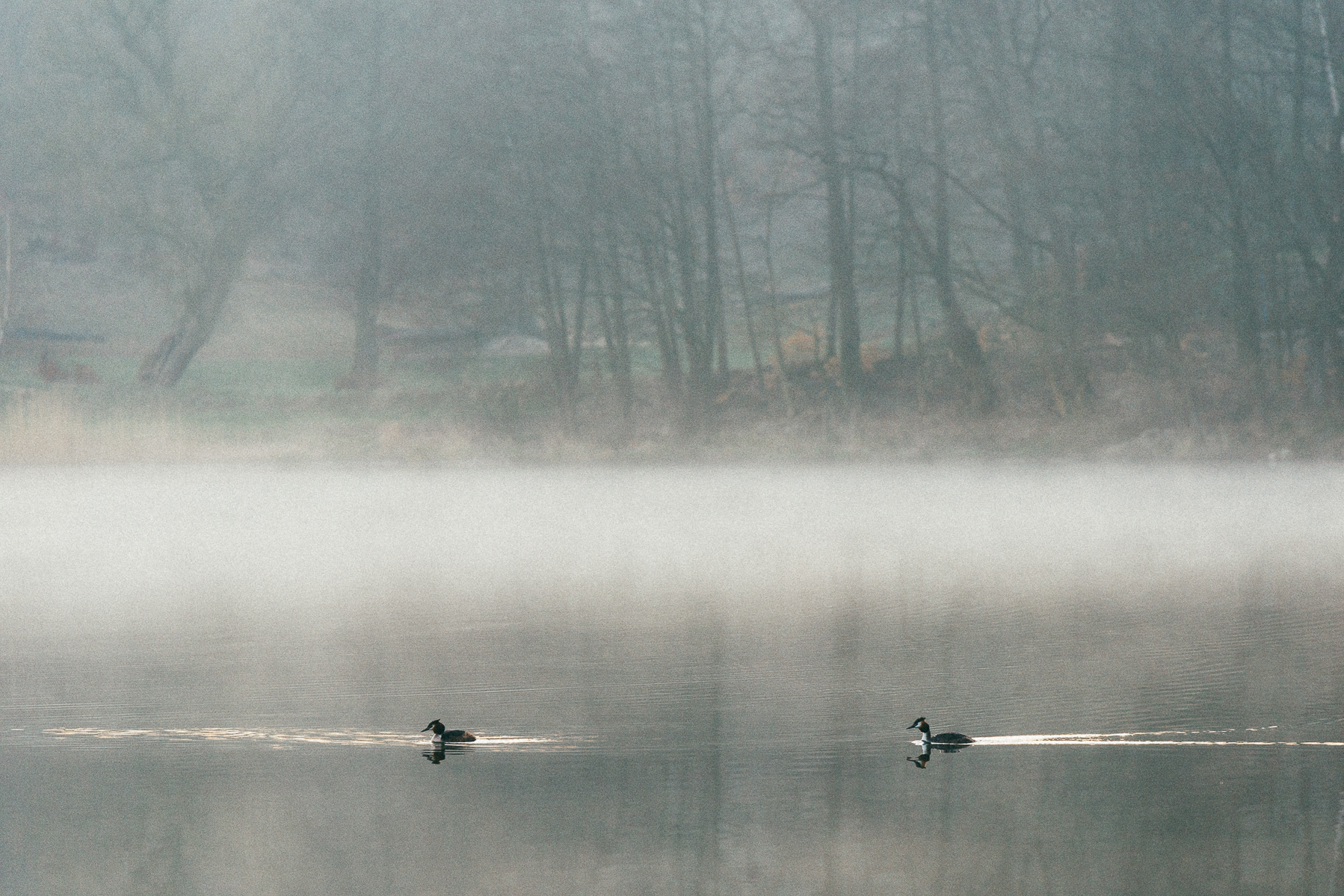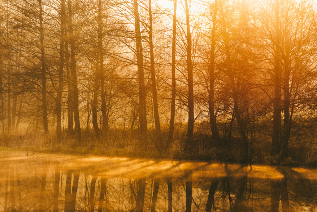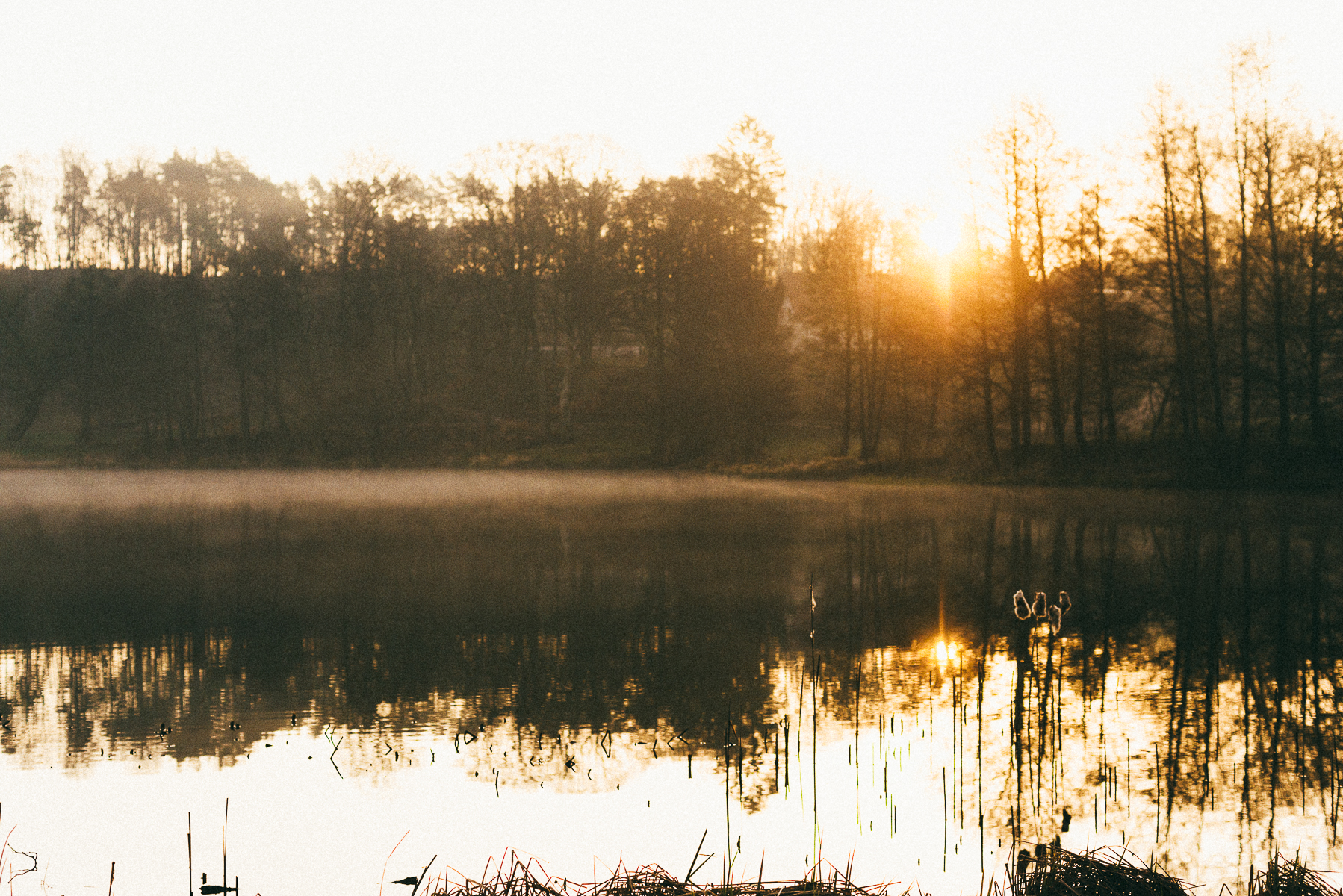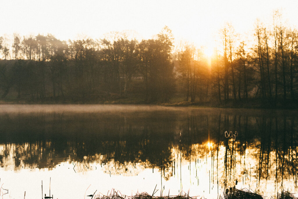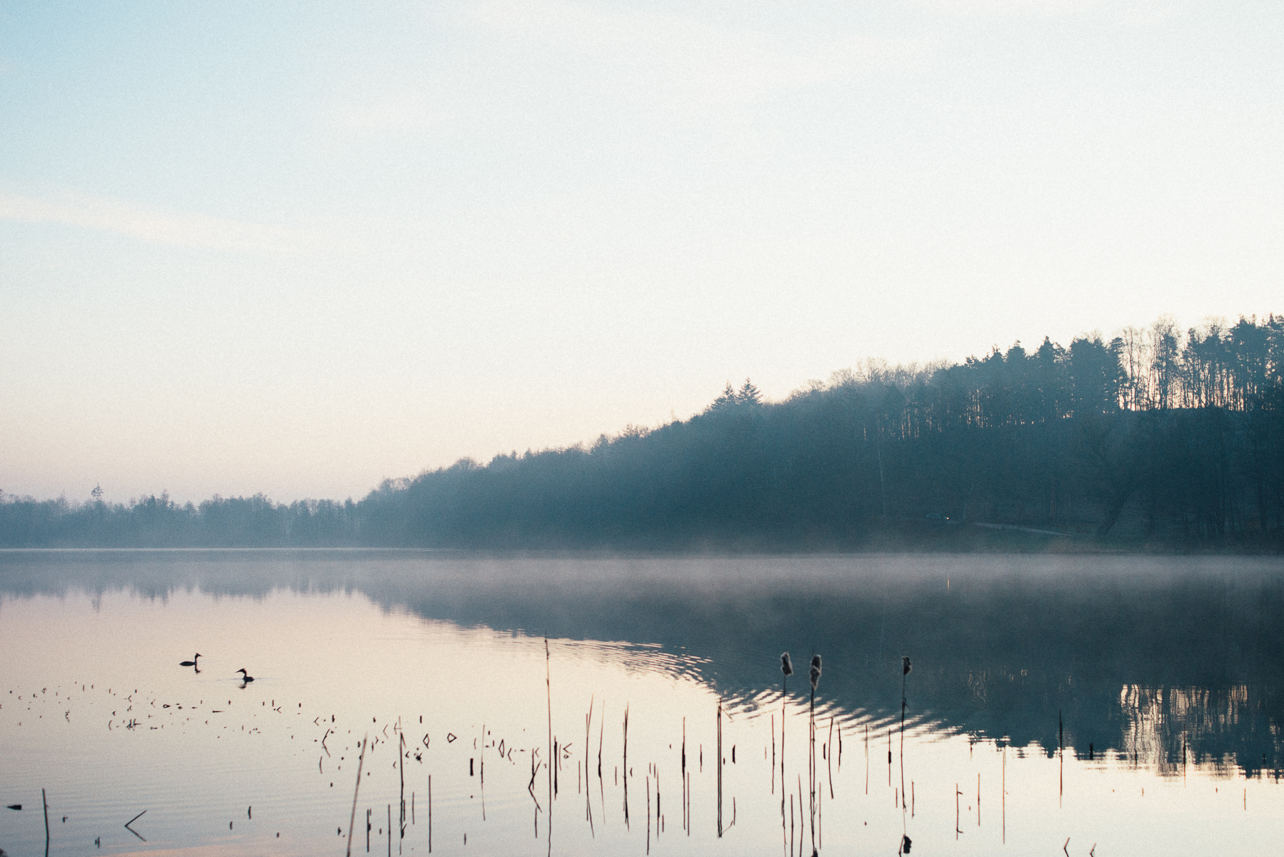 Mgiełki, ptactwo, refleksy na tafli wody…Wreszcie pojawienie się słońca i pokolorowane tego poranka ciepłym odcieniem.